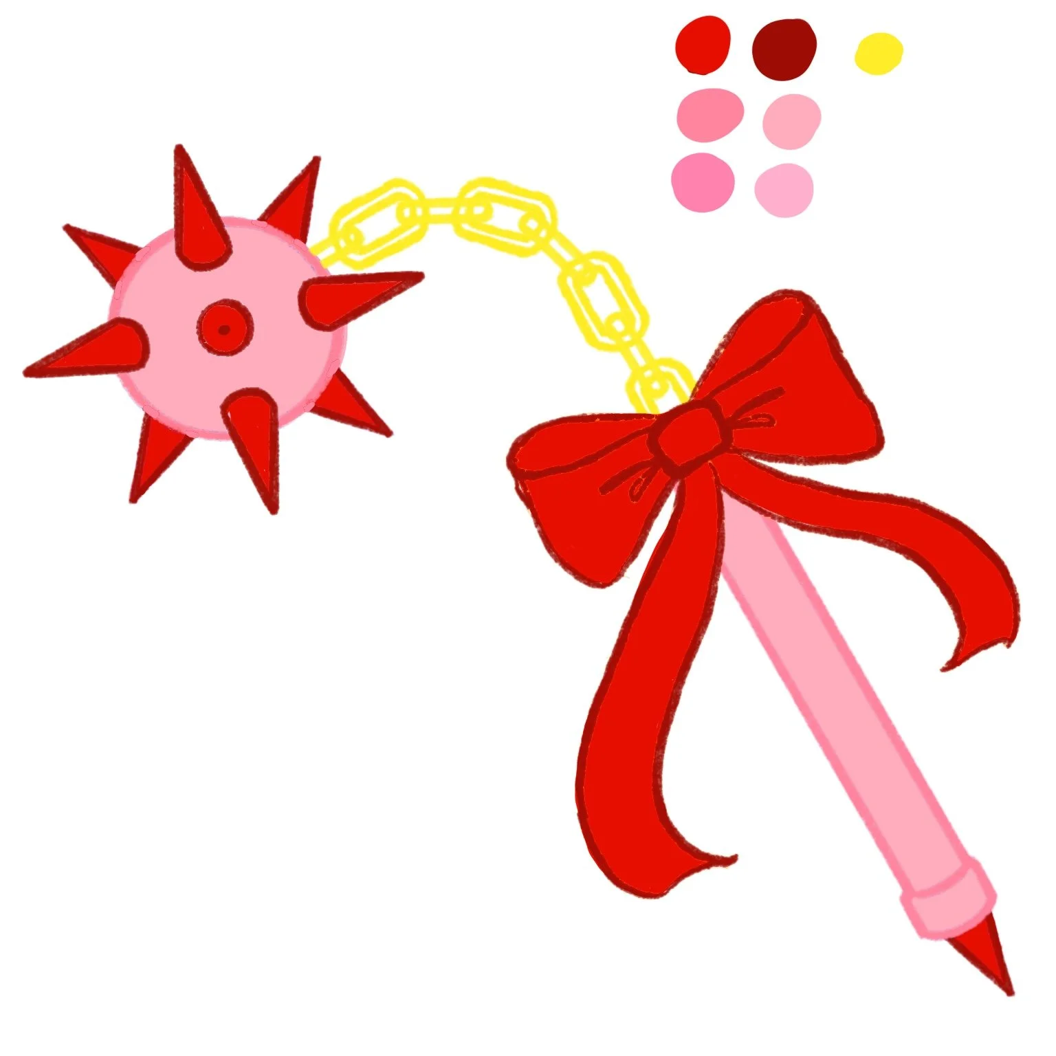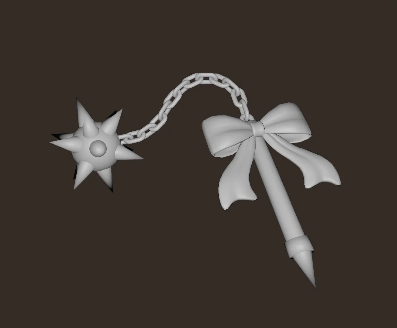In terms of fabrication and display, I chose to lean into the stiff composition of my sculpt by keeping with the modeled chain instead of using a real one, which would make it usable. By doing so, I feel it gives the piece a toy-like quality, and I would likely display both a life-size and doll-size version together, reminiscent of "mini-me" outfits and playsets that allowed you to match with the doll as a child. Of course, I would also lean into the hyper-femme aesthetic with a pink and red color pallet when painted.