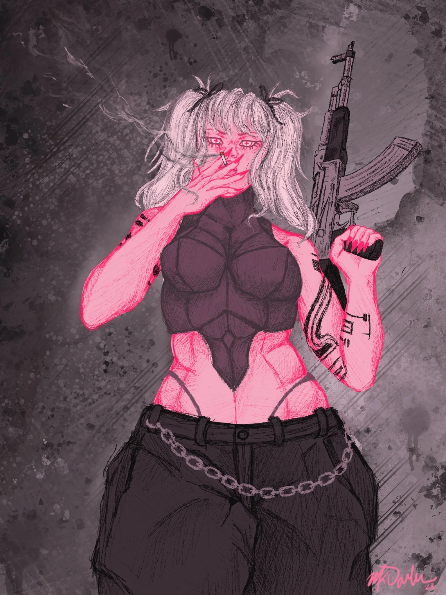 Character Design - Still full-body drawing of Dahlia, a human/demon hybrid, set in the Underground.